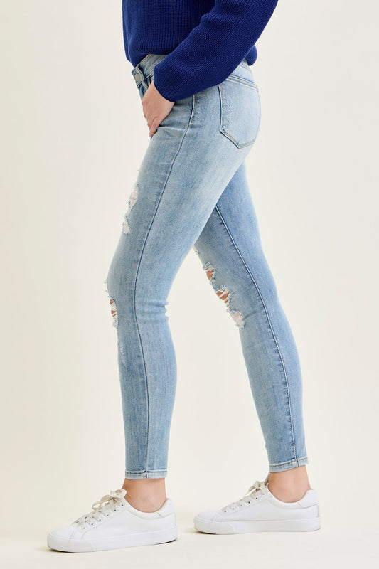 Freya Mid Rise Tummy Control Distressed Skinny - PLUS