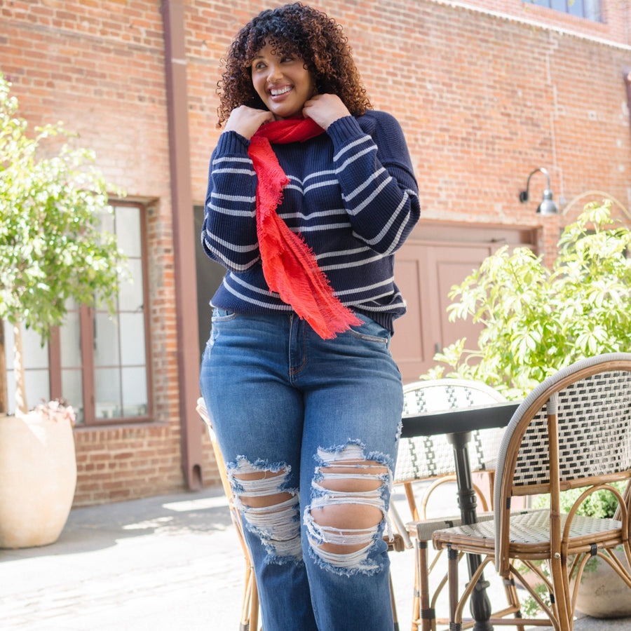 Andrea High Waist Skinny Jeans with Rips - PLUS
