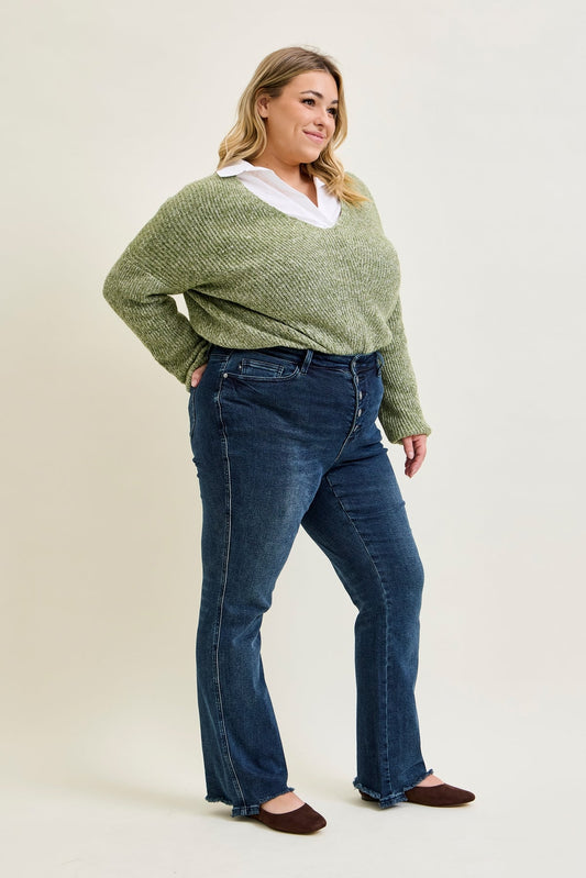 Lisa High Rise Button Fly Hem Distressed Straight Jeans - PLUS